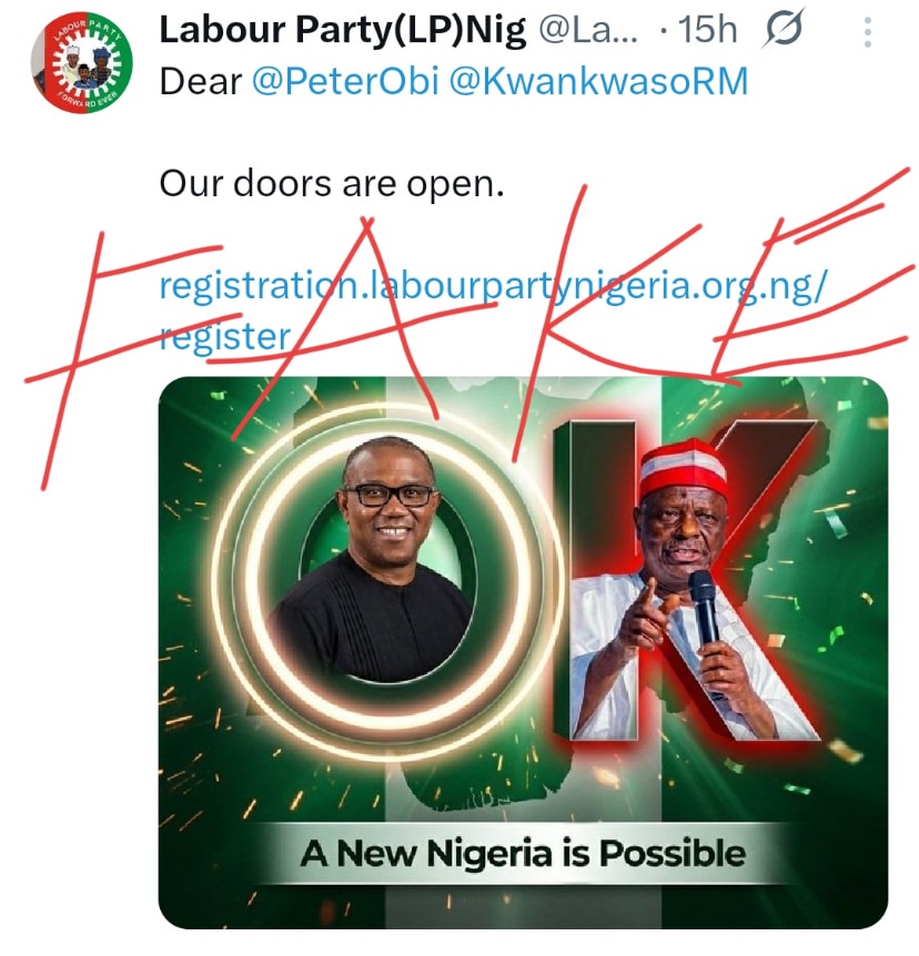 In a press statement issued on April 19, 2026, the party said its position—first announced on February 9—remains unchanged. It specifically flagged a fraudulent X (formerly Twitter) account בשם “LABOUR PARTY (LP) NIG” with the handle @LabourpartyNGR_ as misleading and not affiliated with the party.